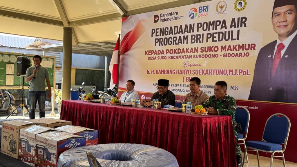 Publikasiterkini.com // Sidoarjo – Ketua Kelompok Fraksi (Kapoksi) Komisi VII DPR RI Ir. H. Bambang Haryo Soekartono, M.I.Pol menegaskan komitmennya pada ketahanan pangan dengan memfasilitasi penyaluran lima pompa air dan dua selang kepada Kelompok Pembudidaya Ikan Boda Sumber Makmur di Desa Suko, Kecamatan Sukodono, Sidoarjo. Bantuan yang berasal dari program CSR BRI ini diharapkan mengerek produktivitas budidaya nila dan lele serta menopang swasembada pangan daerah hingga nasional.