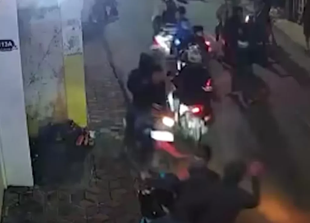 Dalam rekaman CCTV, terlihat gerombolan pelaku menghadang dan mengejar korban sebelum melakukan pemukulan. Setelah korban tersungkur, pelaku membawa kabur motor Honda Beat Street warna putih milik korban.