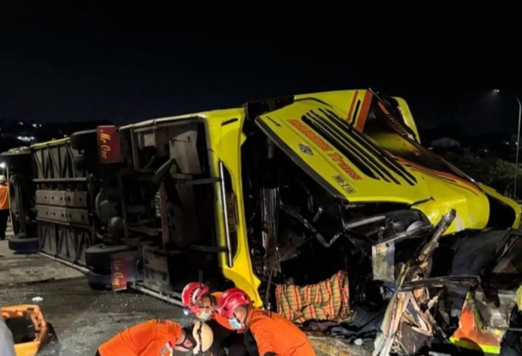 Publikasiterkini.com° Semarang – Sebuah kecelakaan tragis menimpa bus PO Cahaya Trans di ruas simpang susun Exit Tol Krapyak, Kota Semarang, Jawa Tengah, pada Senin (22/12/2025) dini hari sekitar pukul 00.30–00.45 WIB. Bus yang melayani rute Bogor–Yogyakarta (berangkat dari Jatiasih, Bekasi) ini mengalami kecelakaan tunggal setelah diduga melaju kencang dan hilang kendali di tikungan tajam, menabrak pembatas jalan hingga terguling.