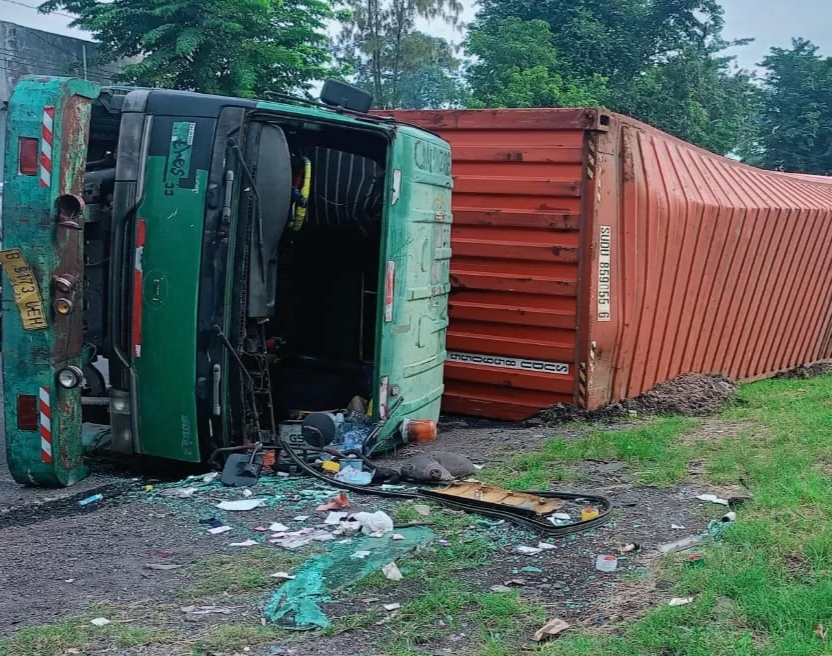“Sesampainya di depan SMPN 1 Balongbendo, pengemudi diduga kurang konsentrasi sehingga kendaraan trailer terguling ke sisi kiri jalan,” ujar Kompol Sugeng.