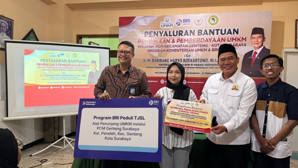 SURABAYA — Anggota DPR RI Fraksi Gerindra Daerah Pemilihan Surabaya–Sidoarjo, Bambang Haryo Soekartono, menegaskan komitmennya dalam memperkuat sektor usaha mikro, kecil, dan menengah (UMKM) melalui kolaborasi konkret dengan perbankan. Bersama BRI Cabang Kaliasin, ia menyalurkan bantuan peralatan usaha sekaligus dukungan permodalan kepada lima pelaku UMKM di Surabaya, Sabtu (21/2/2026).