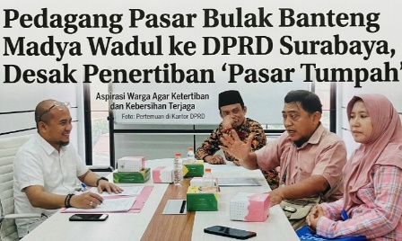 Publikasiterkini° Surabaya _ Polemik keberadaan pasar tumpah di kawasan Bulak Banteng Madya kembali memanas. Sebanyak delapan perwakilan pedagang didampingi pengurus Koperasi Pasar Bulak Banteng Madya mendatangi Komisi B DPRD Kota Surabaya untuk mengadukan menjamurnya pedagang liar yang dinilai mematikan ekonomi pedagang resmi, Kamis (21/4/2026).
