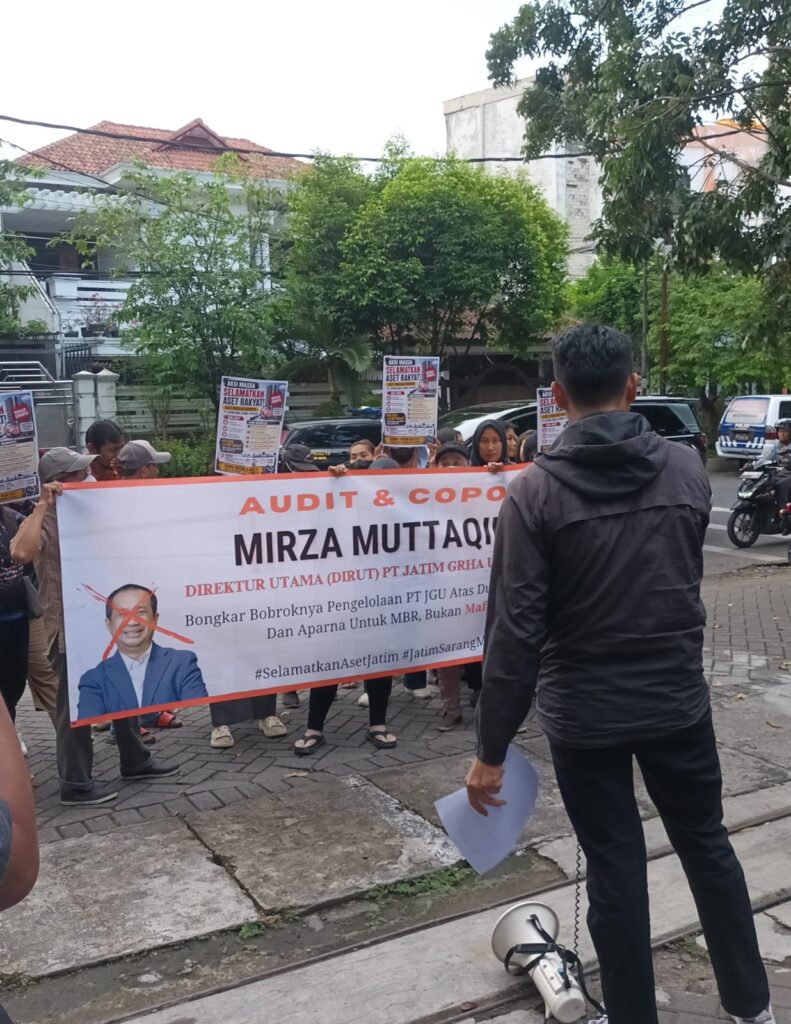 Publikasiterkini.com° Majelis Pimpinan Nasional Aktivis Pegiat Jaga BUMD melakukan aksi unjuk rasa di depan kantor PT. Jatim Graha Utama (PT. JGU) pada Kamis, 23 April 2026.