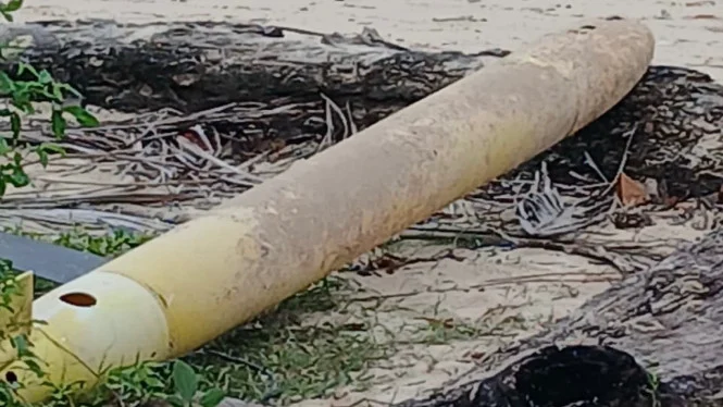 Publikasiterkini° Sumenep _ Warga pesisir Dusun Aenglombi, Desa Torjek, Kecamatan Kangayan, Pulau Kangean, dihebohkan dengan penemuan sebuah benda misterius yang diduga menyerupai torpedo atau proyektil aktif pada Senin (20/4/2026). Guna menghindari risiko ledakan, Kepolisian Resor (Polres) Sumenep telah mendatangkan tim ahli dari Gegana Brimob Polda Jawa Timur.