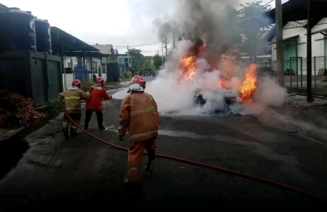 Publikasiterkini° Gresik _ Sebuah insiden kebakaran menimpa satu unit mobil listrik jenis Hyundai Kona di Jalan Mayjen Sungkono Blok B/4, Desa Gulomantung, Kecamatan Kebomas, Kabupaten Gresik, pada Rabu (22/4/2026) siang. Kebakaran diduga kuat dipicu oleh panas berlebih (overheat) pada sistem baterai kendaraan.