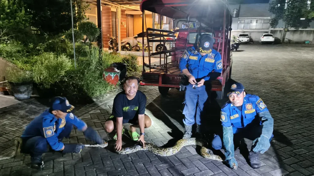 “Proses evakuasi berlangsung aman dan terkendali, selesai pada pukul 20.17 WIB. Ular kemudian dimasukkan ke dalam karung untuk diamankan di markas komando,” jelasnya.