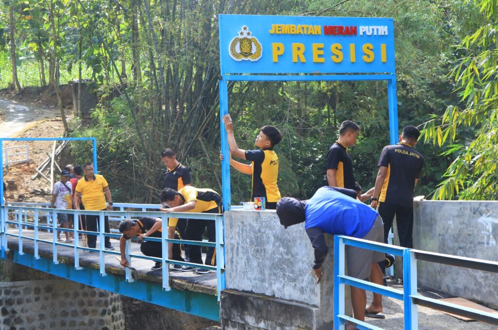 Komitmen Pelayanan, Polres Ngawi Tuntaskan Renovasi Jembatan Merah Putih Presisi di Blandongan
